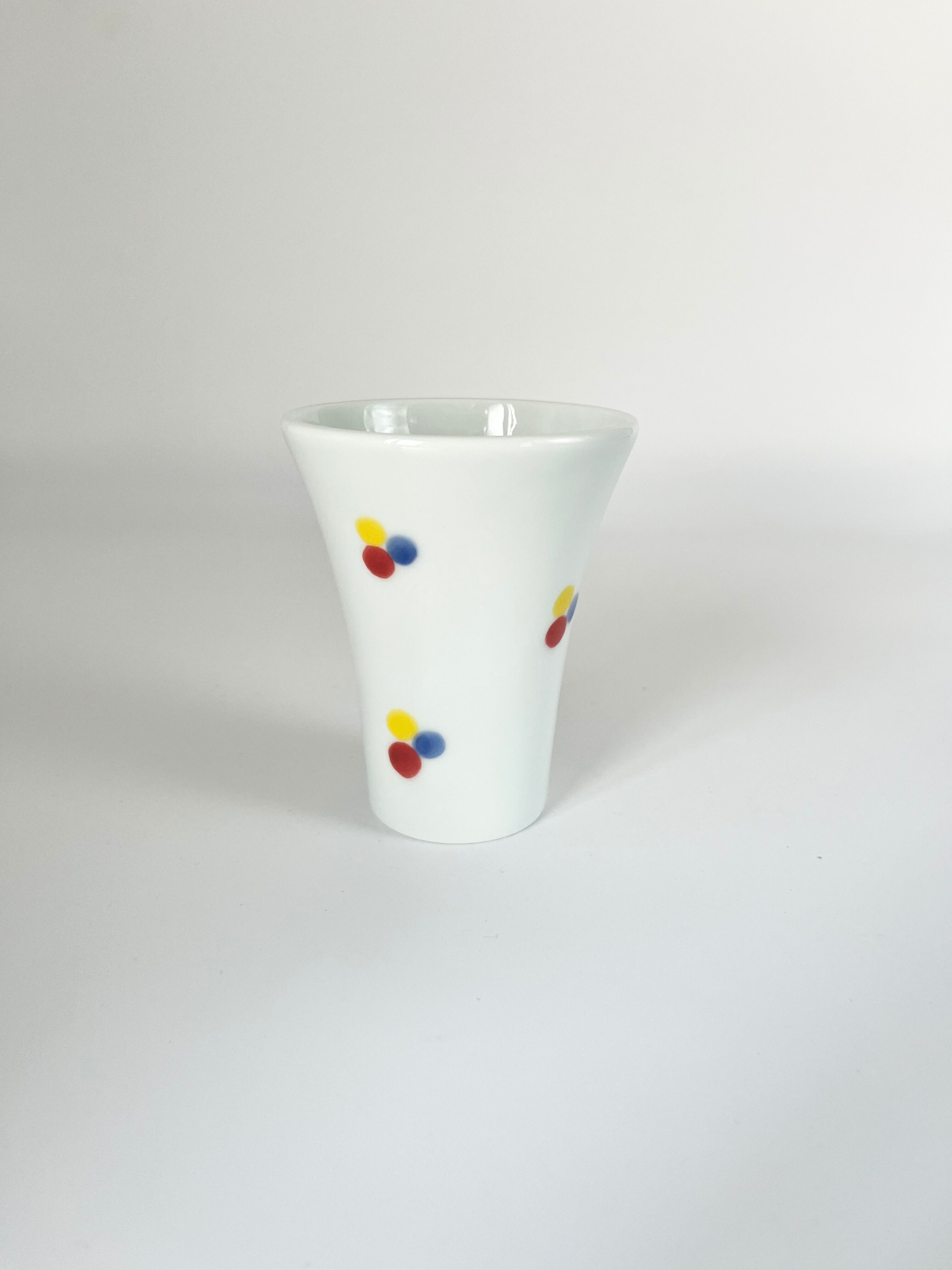 三色の玉を基本とし、コップの外側全体にバランス良く散らし、三丸それぞれの色合いが可愛らしい商品です。ホッと出来る空間にそっと明るさや元気を与えてくれるようなフリーカップです。冷たいものから温かいものまで年中最適ですよ!!たまには皆でカンパーイ!!も良いかも?!