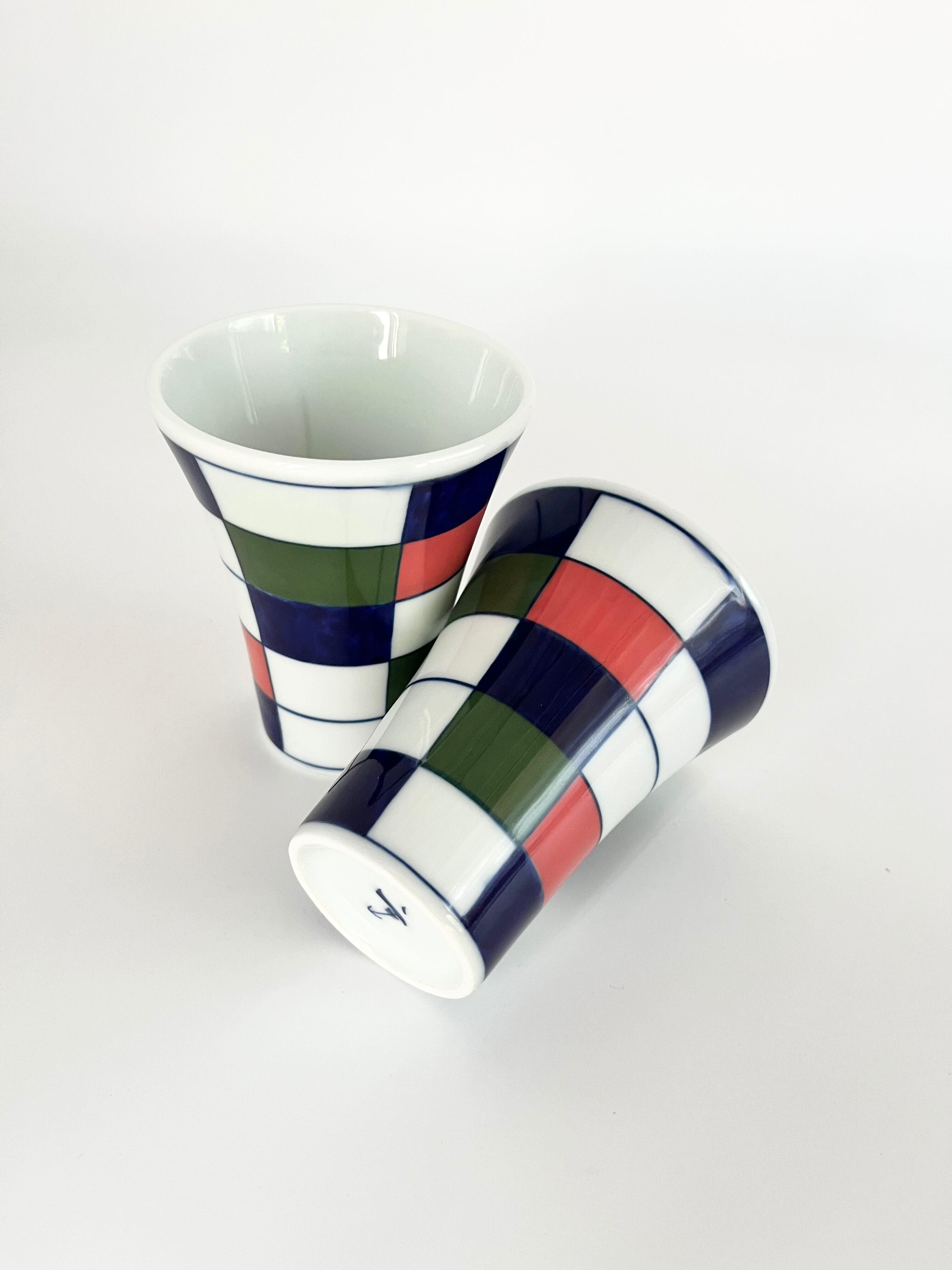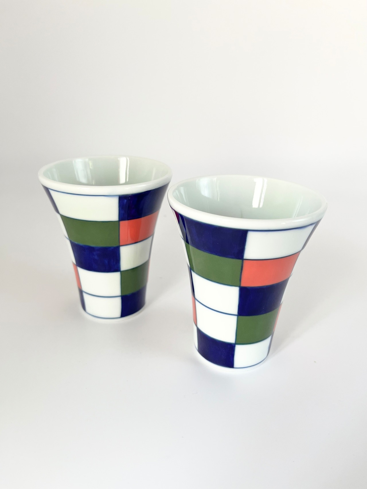 コップの外側全体に、市松模様をアレンジし、配色のバランスを変化させて動きを出した、一風変わった面白さを醸し出す商品です。楽しい食卓を、このおしゃれなフリーカップとともに…過ごしてみませんか?