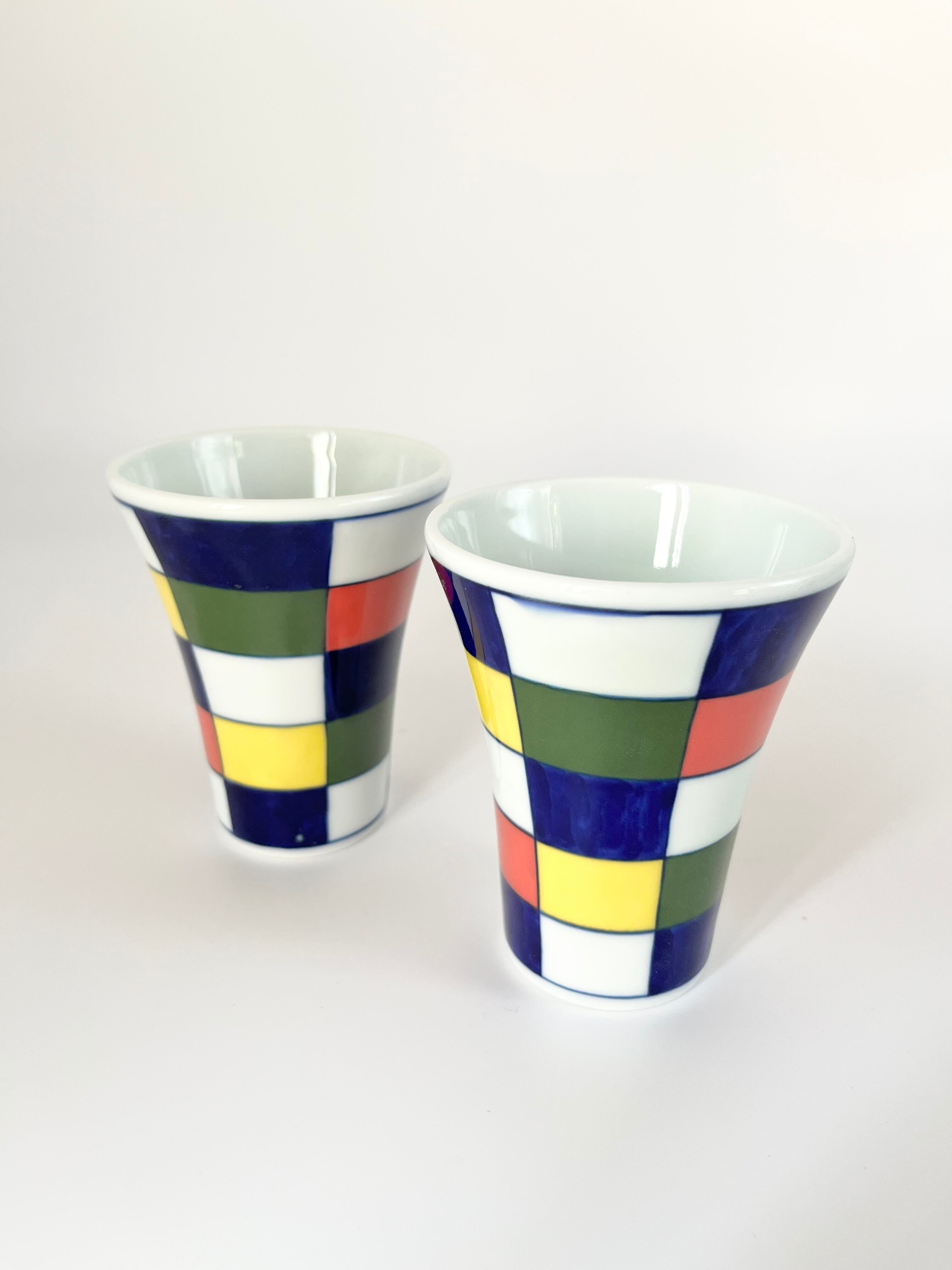 コップの外側全体に、市松模様をアレンジし、配色のバランスを変化させて動きを出したパンチのある、一風変わった面白さを醸し出す商品です。楽しい食卓を、このおしゃれなフリーカップとともに…過ごしてみませんか?