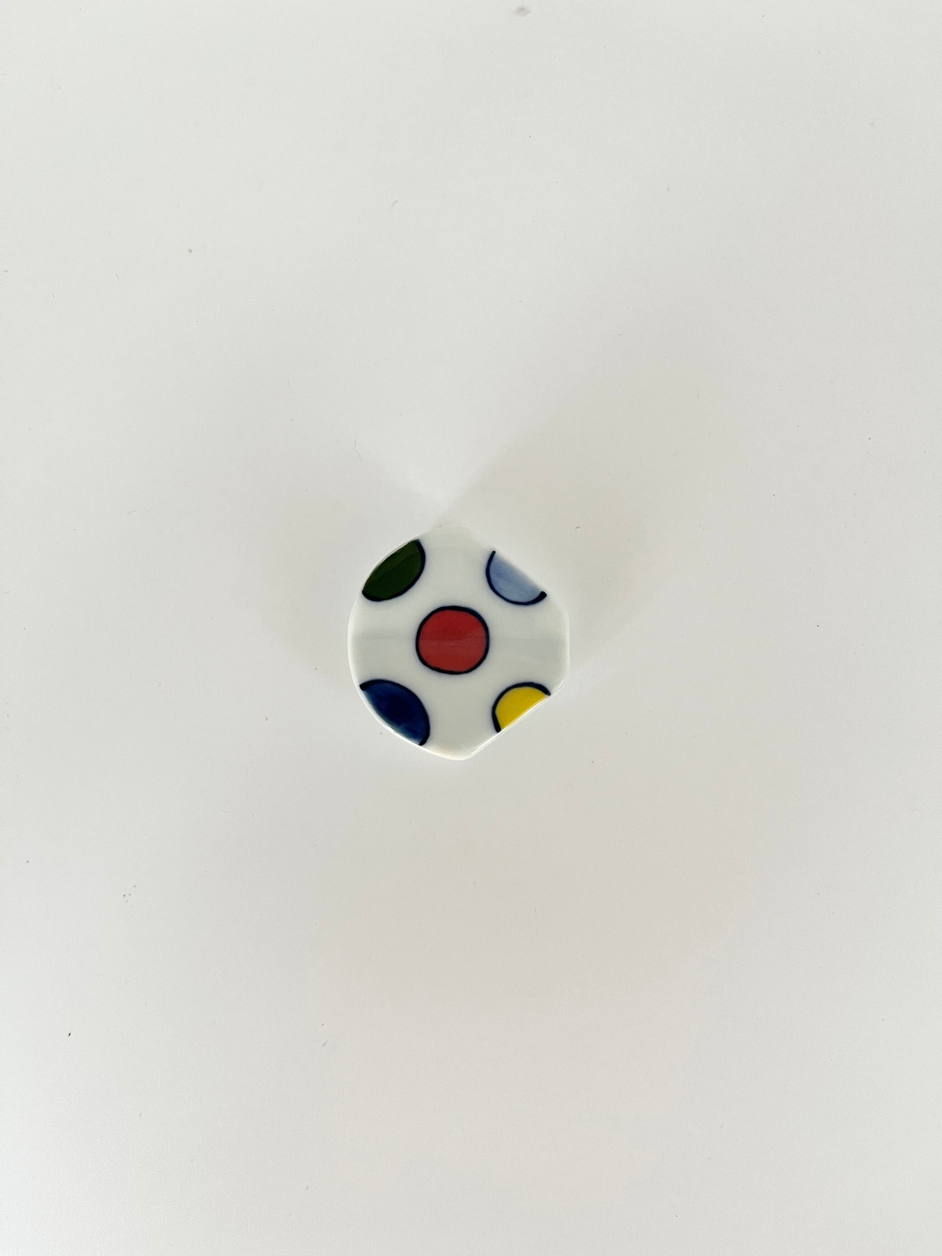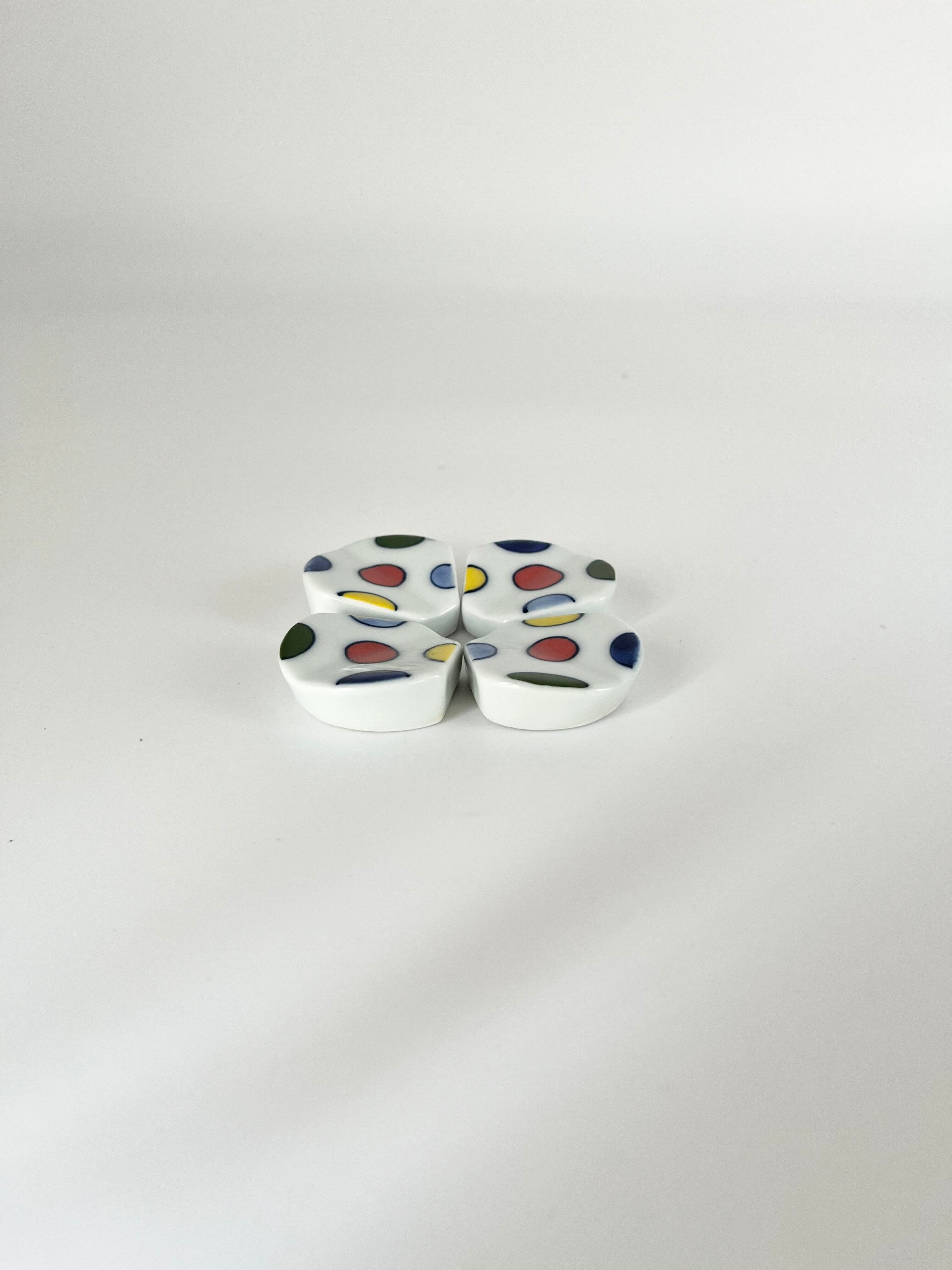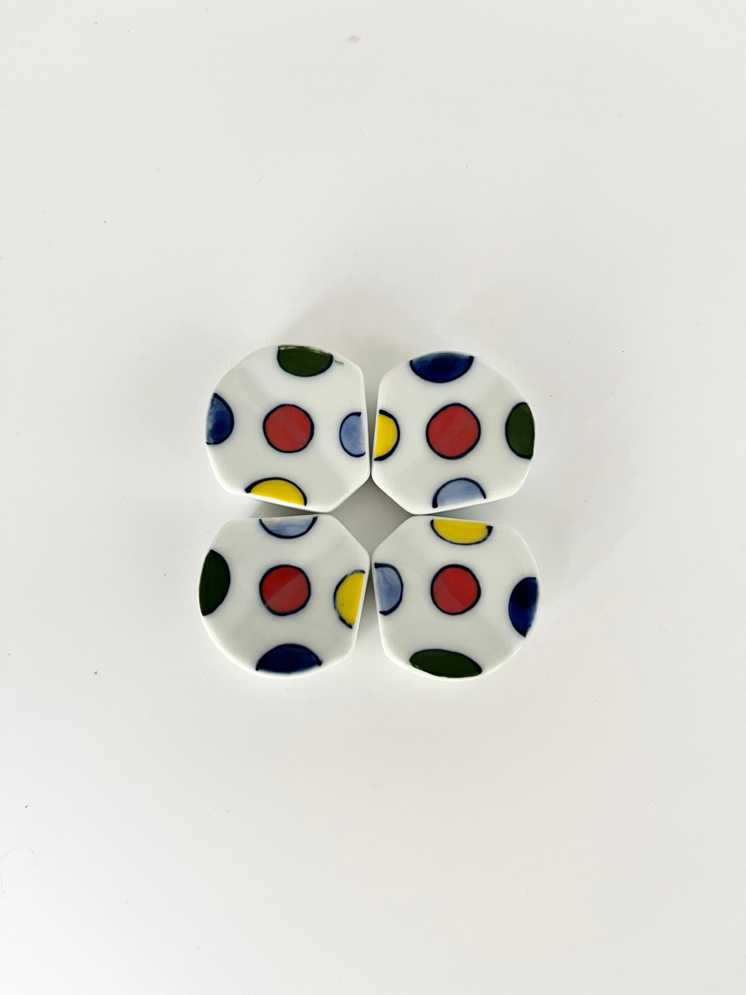 水玉模様を描いたとってもcuteなデザインに仕上げた使い勝手の良い箸置きです♡普段使いにピッタリ!!です。ステキなアイテムで食卓を華やかにしませんか〜?