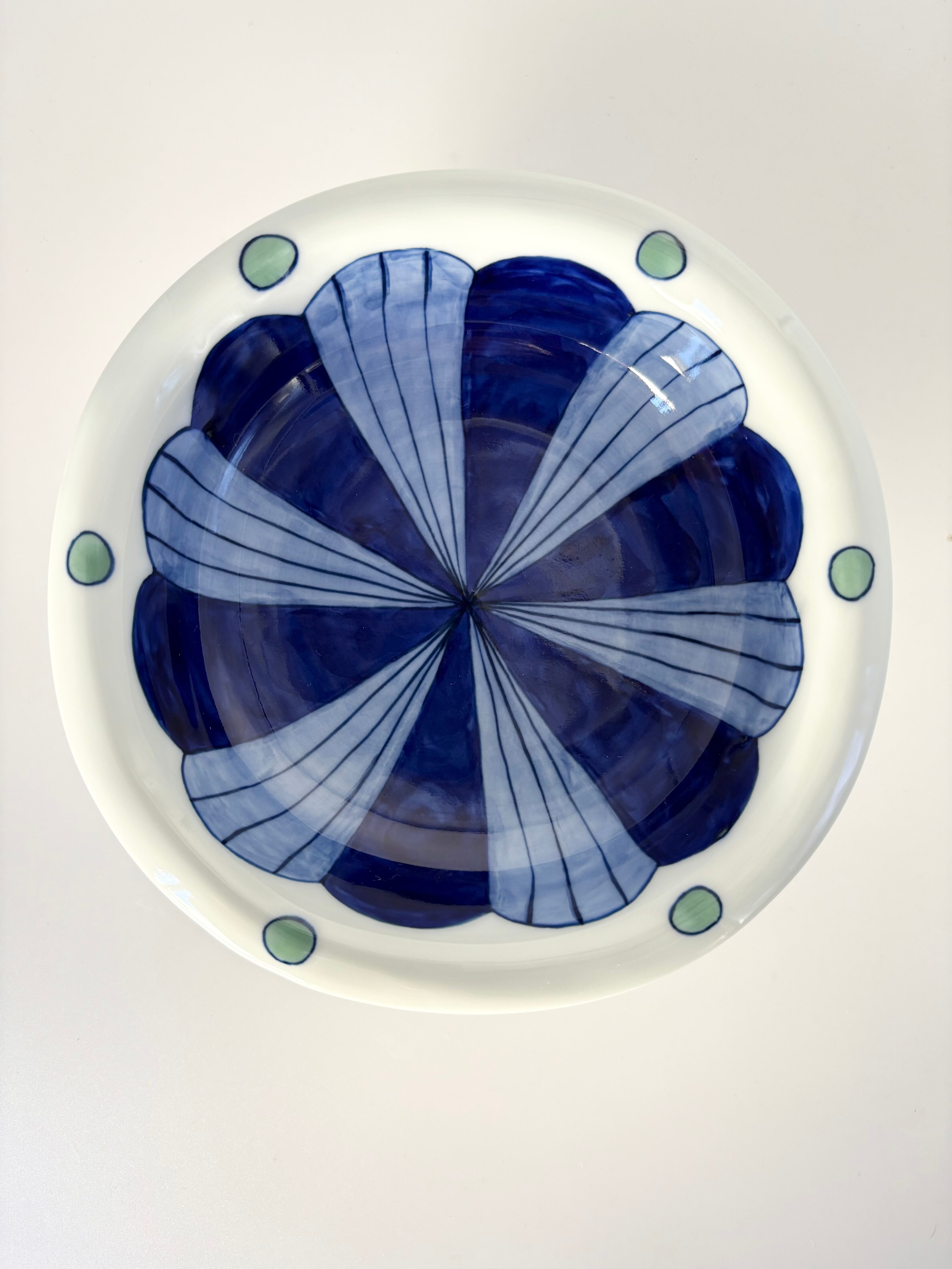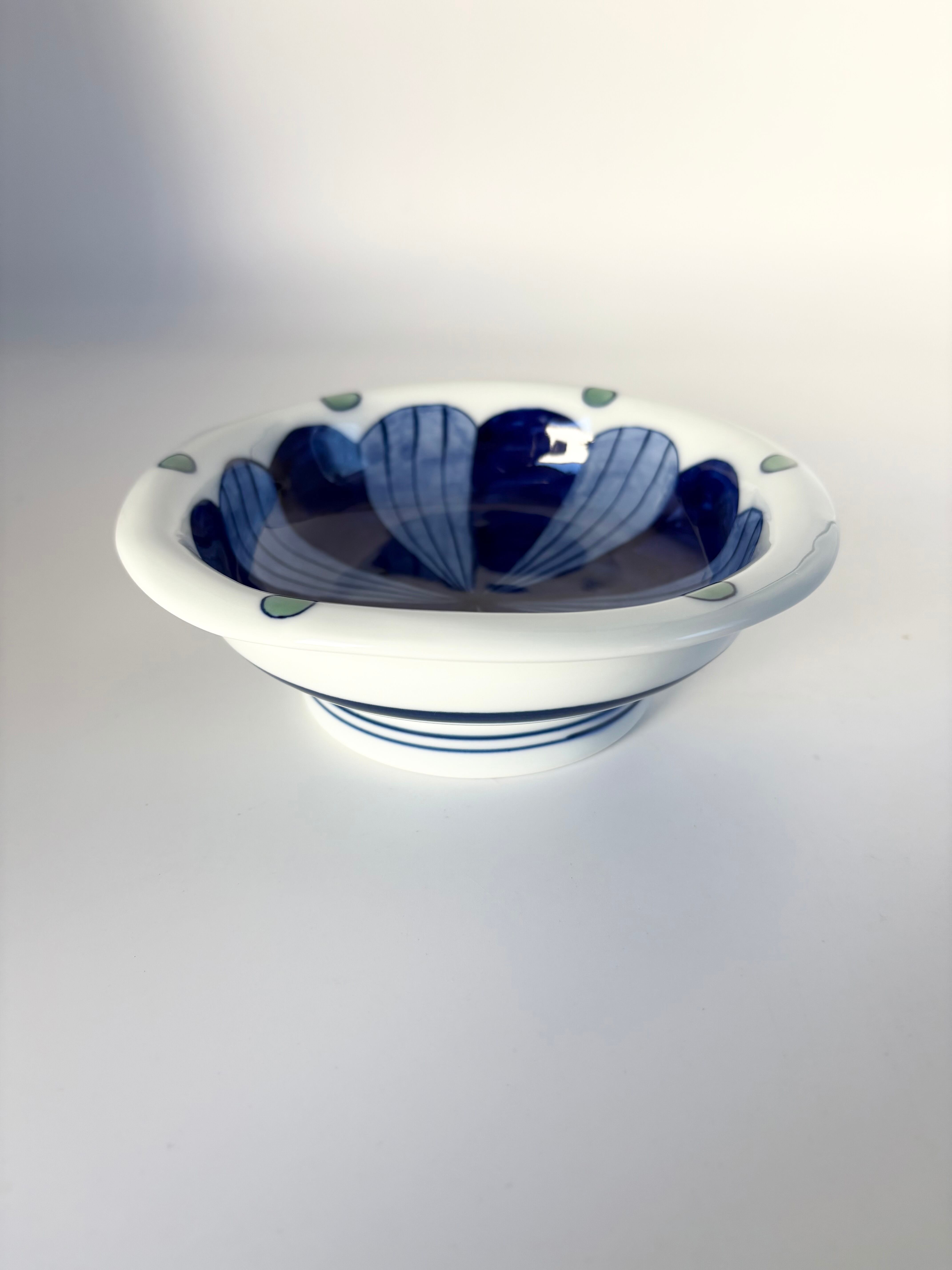 薄濃(だ)みしたものと濃だみとを交互に施し、色合いのコントラストによって存在感がより増して、渕の丸みを帯びた所に色釉の○があることにより、全体が可愛らしい印象に感じられたり、外側の太めの筋が、器の引き締め効果を併せ持つ商品です。ステキな中鉢、食卓が一層華やかに彩られますよ☆ 何を盛ろうかな〜と考えるのが楽しみになりますね!是非お手元で実感されてみてはいかがですか?