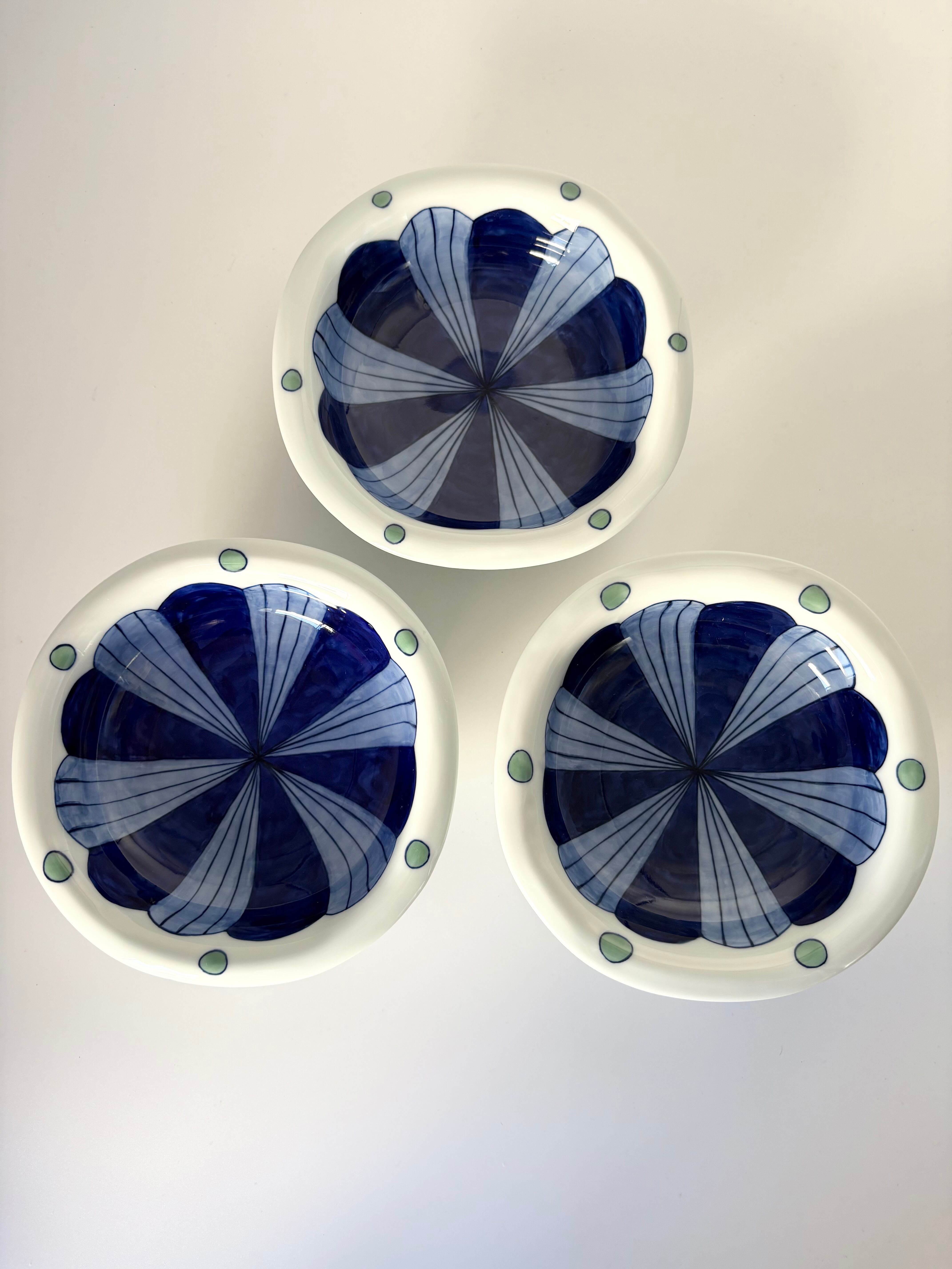 薄濃(だ)みしたものと濃だみとを交互に施し、色合いのコントラストによって存在感がより増して、渕の丸みを帯びた所に色釉の○があることにより、全体が可愛らしい印象に感じられたり、外側の太めの筋が、器の引き締め効果を併せ持つ商品です。ステキでお得な3個セットの中鉢、食卓が一層華やかに彩られますよ☆ 何を盛ろうかな〜と考えるのが楽しみになりますね!是非お手元で実感されてみてはいかがですか?