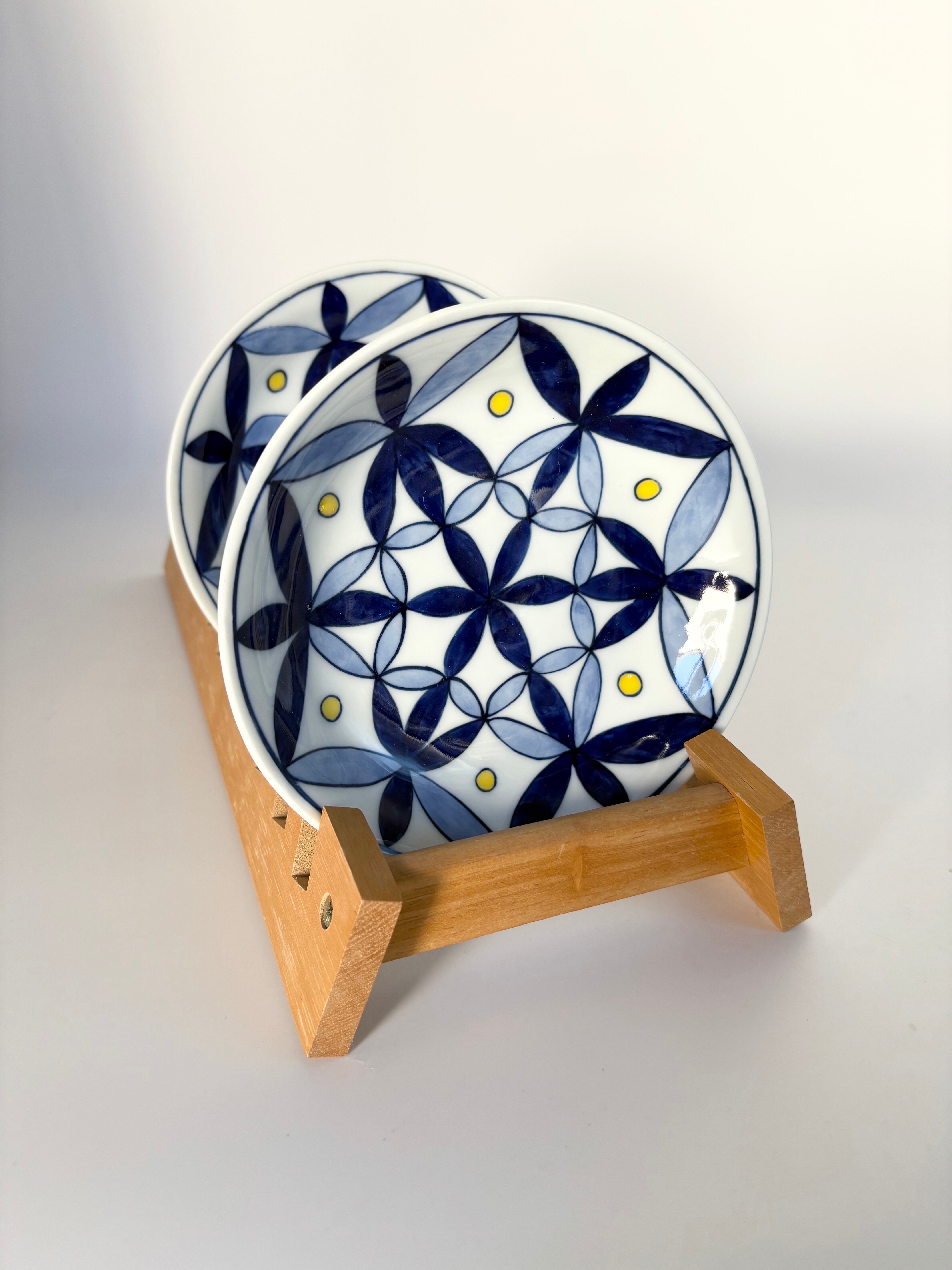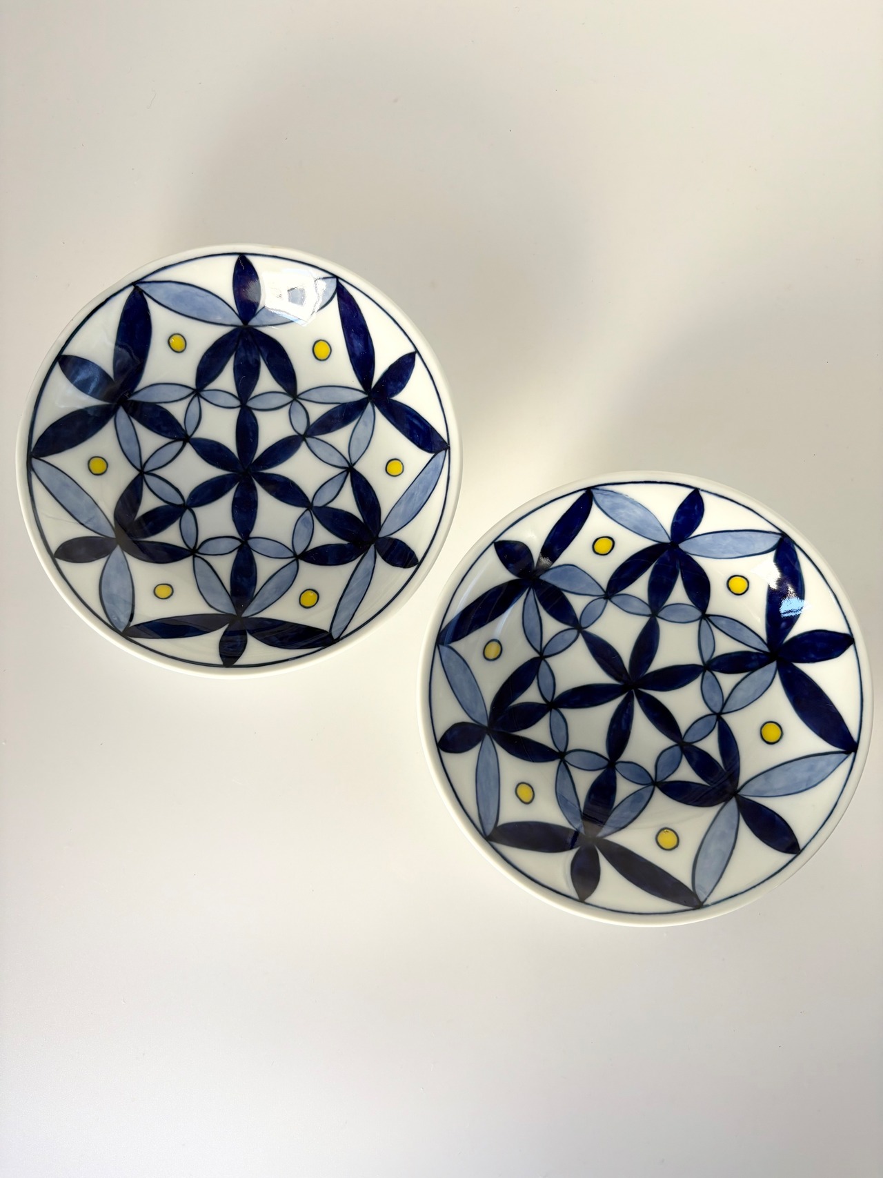 表面全体に、花びらをモチーフとして使用し、万華鏡をイメージしながら三色を使って表現し、その美しさを楽しめる商品です。ペアなのも良いですね。幸せなお二人にピッタリ!かも?!
