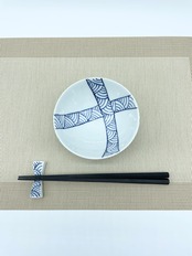 青海波の帯紋を十字に重ねたお洒落なデザインのお茶碗ですよ。