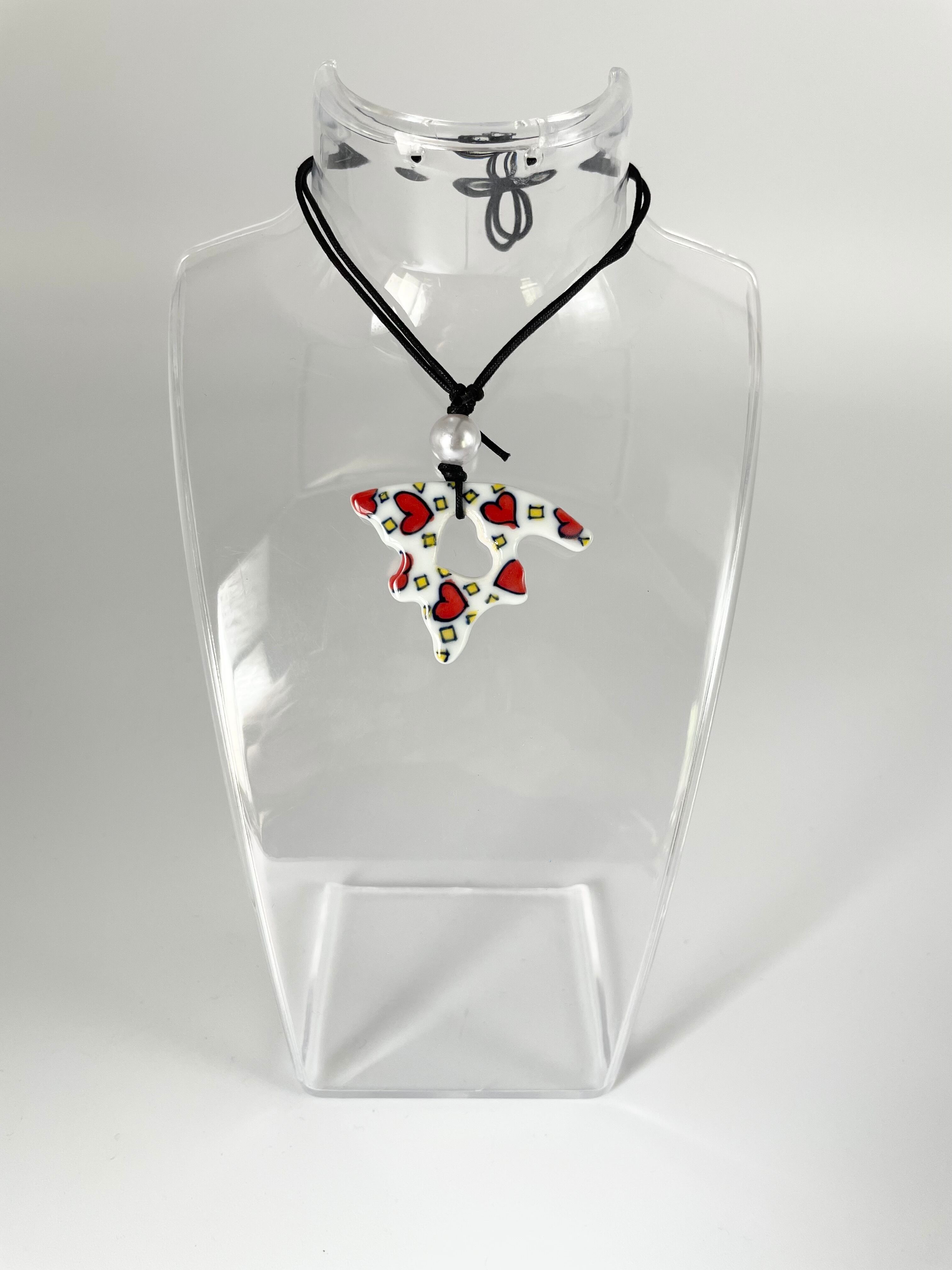 ハートをくり抜いた変わった形に、lovelyな♡をあしらったデザインと、四角in四角のcuteなデザインの、手描きで可愛らしいデザインです!!リバーシブルなので、その日の気分に応じていつでも付け替え可能ですよ☆